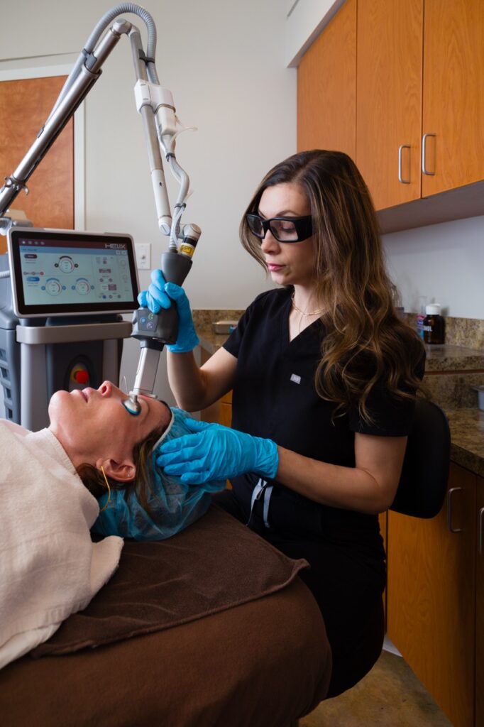 Most patients see results after just one session with our HELIX CO2 laser in Indianapolis. However, we often recommend a series of 2 to 3 treatments spaced several weeks apart for optimal improvement in tone and texture. During your consultation, we’ll talk through exactly what you can expect from your treatment plan.