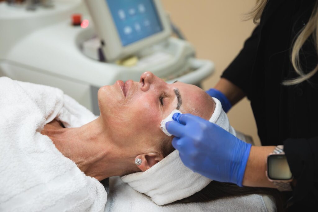 During a laser resurfacing treatment, your provider is using the power of light energy to remove the damaged layers of skin. As the old skin is removed, it stimulates your body’s natural collagen production to produce newer, younger-looking skin.